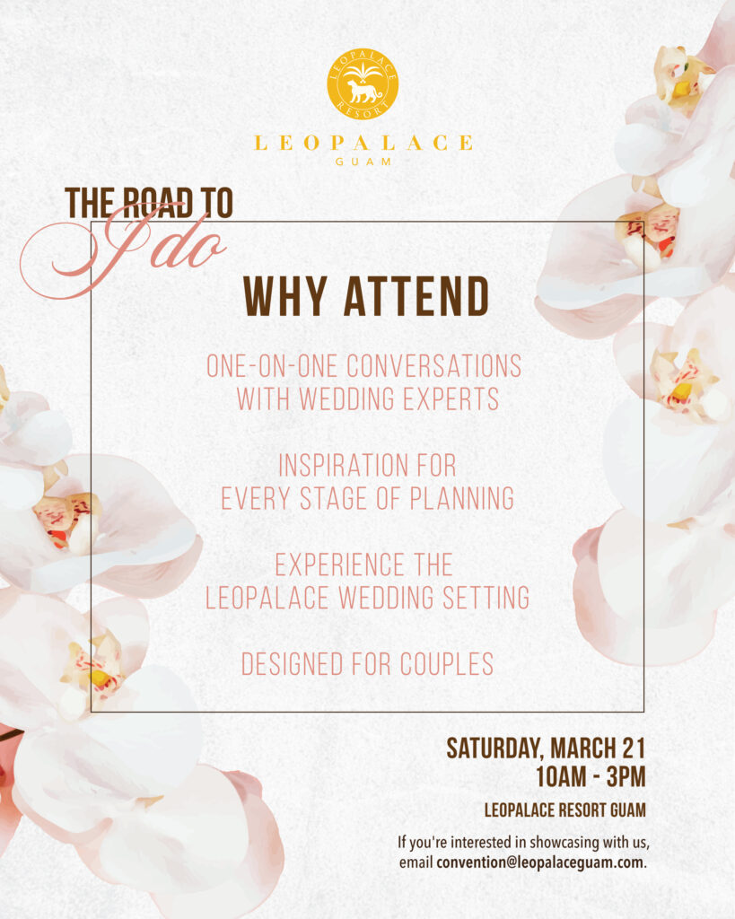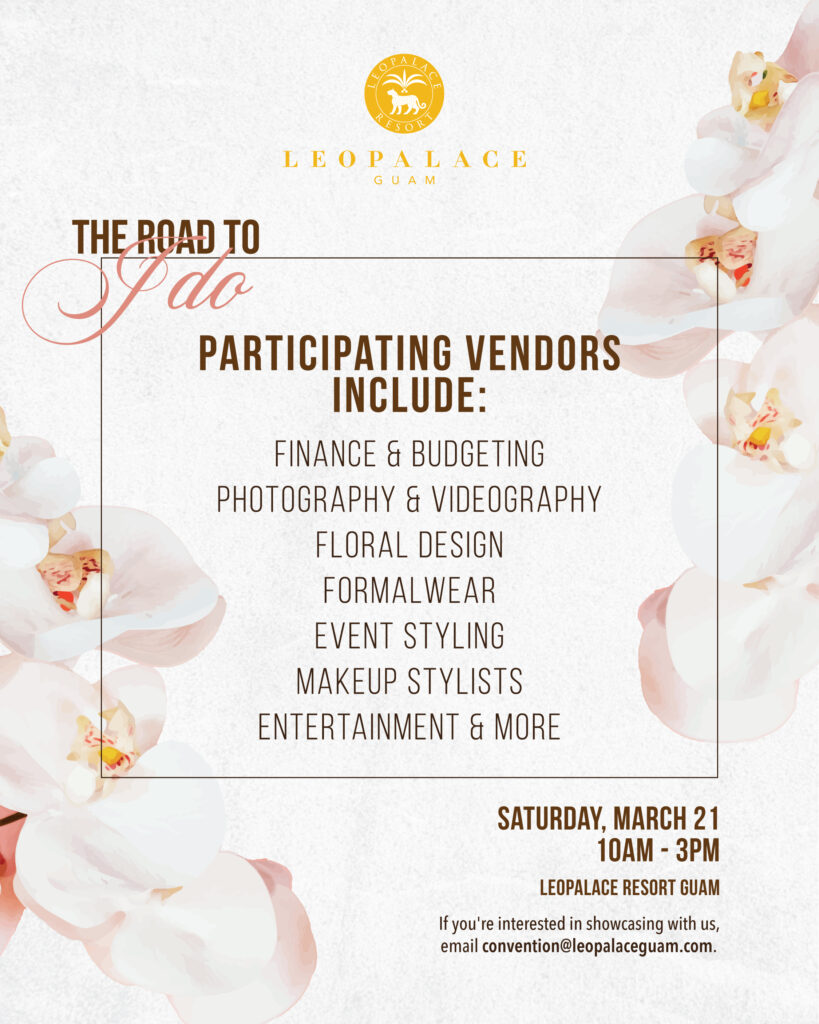 Join us at LeoPalace Resort for The Road to “I Do” – An Immersive Bridal Expo on Saturday, March 21, from 10 AM–3 PM.