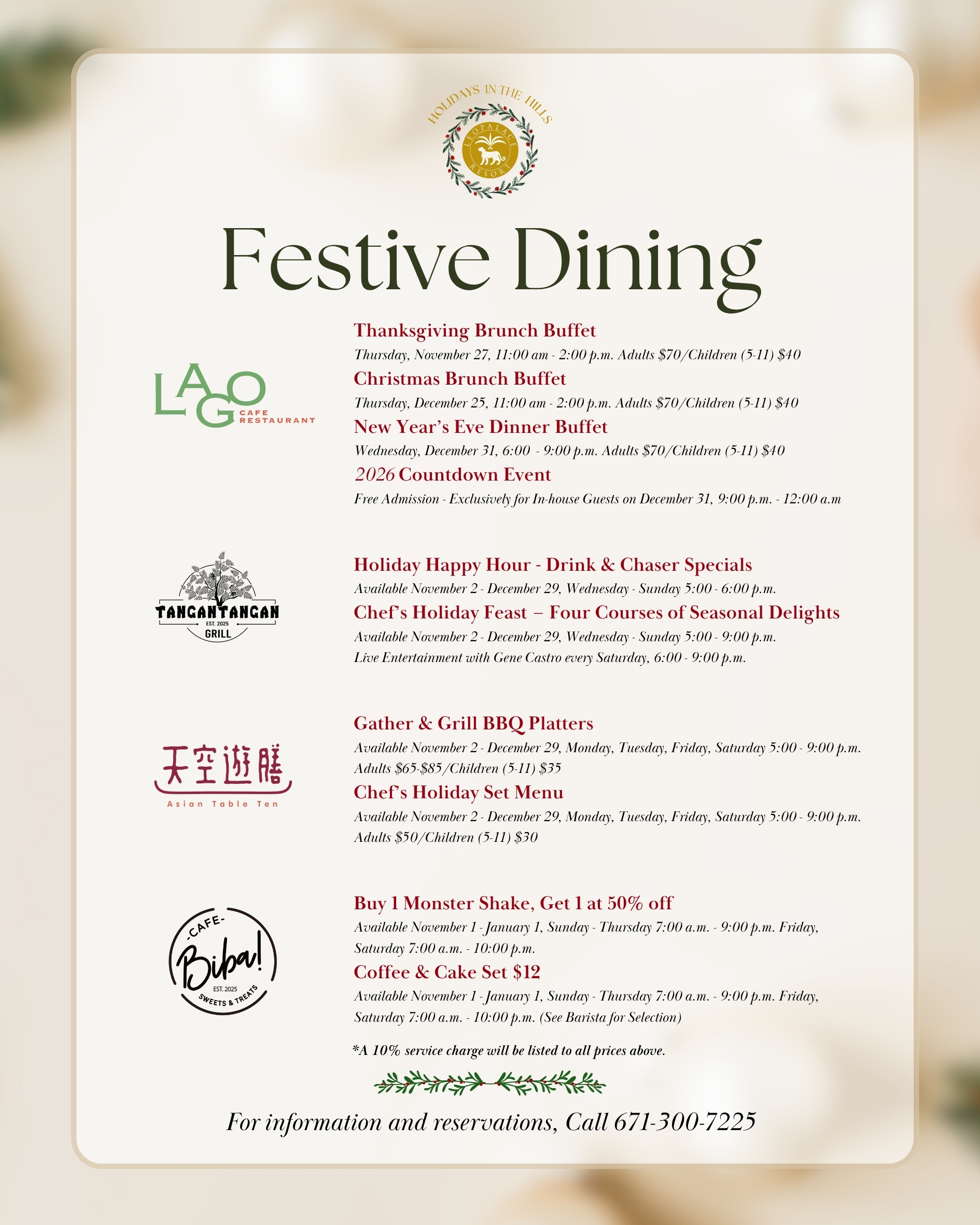 各レストランでは、限定イベントやお得なメニューをご用意しております。ぜひお見逃しなく!