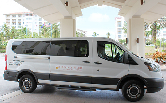 레오팔레스 리조트 괌은 괌 국제공항과 리조트 간 편안하고 사전 예약된 공항 교통 서비스를 제공합니다(유료 및 예약 필수).