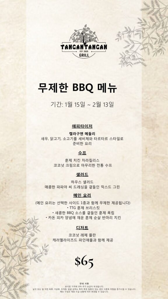저희 인기 BBQ 메뉴를 마음껏 즐기실 수 있습니다.