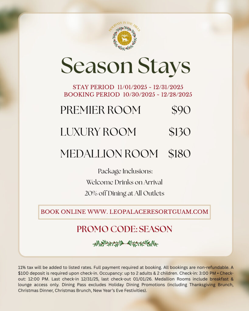 Celebrate the magic of the season at LeoPalace Resort Guam! Enjoy festive feasts, joyful gatherings, and sparkling celebrations — everything you need to make this holiday truly unforgettable.